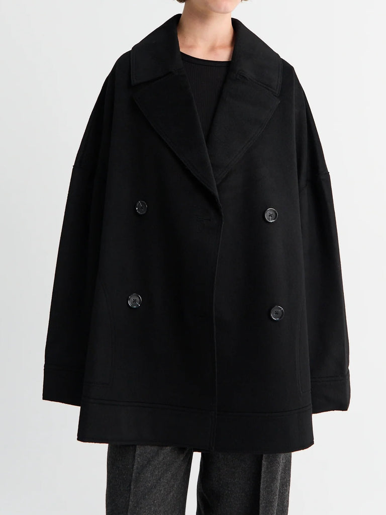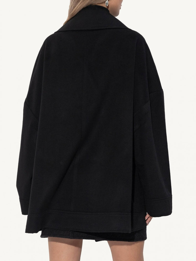 - Klasisks mētelis ar plašu A-līnijas formu, kas atgādina liela izmēra jaku