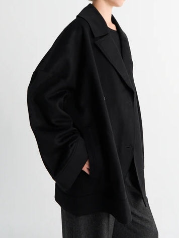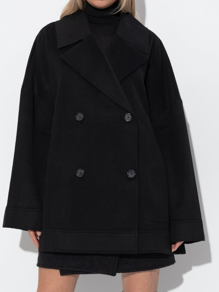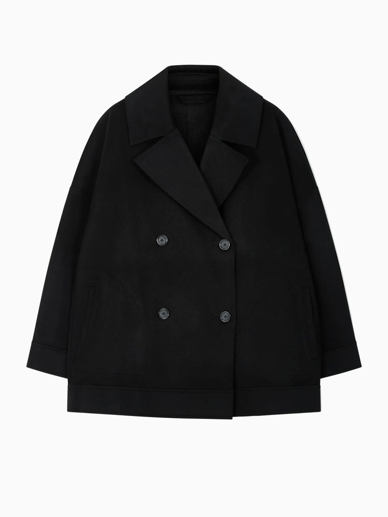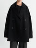 - Ar divrindu, liela izmēra dizainu, kas izgatavots no vilnas maisījuma dubultā auduma