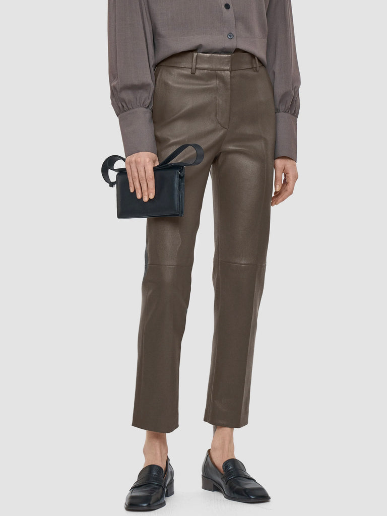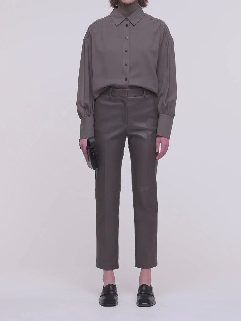 - Apdarināts ar centrālajām presētajām krokām, lai iegūtu asu, pielāgotu apdari