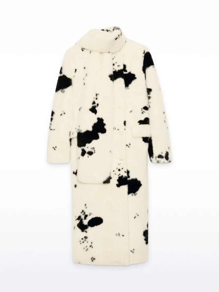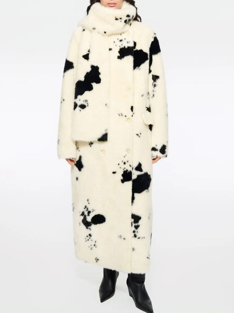- Izgatavots no mākslīgās kažokādas ar neapstrādātām malām un savienots ar mākslīgo zamšādu.